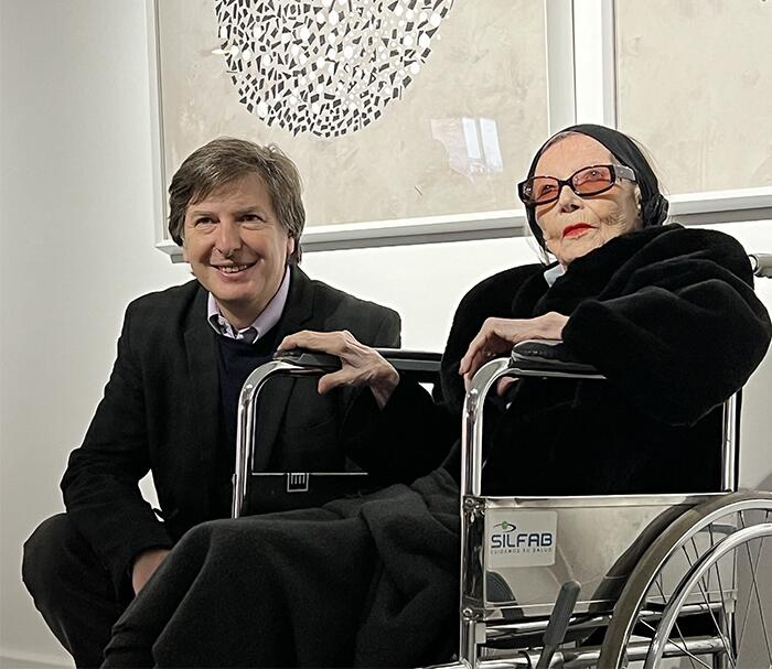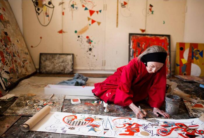 Su vida fue tan coherente como su obra: cada día comenzaba temprano, con largas horas de pintura, seguía con la música en el piano y se cerraba con un brindis. Ni siquiera el aislamiento detuvo su impulso: continuó creando, recortando papeles, inventando ritmos. Su pintura —alegre, espontánea, profundamente lúdica— construyó universos donde líneas, hilos y pequeños fragmentos de color flotan sobre fondos luminosos, como si cada obra respirara su propio compás. Experimentó sin límites: pintó con escobas, exploró materiales, trabajó con pintura fluorescente y, en los últimos años, eligió sus manos como herramienta directa, manos que siguieron dibujando hasta hace muy pocos días.