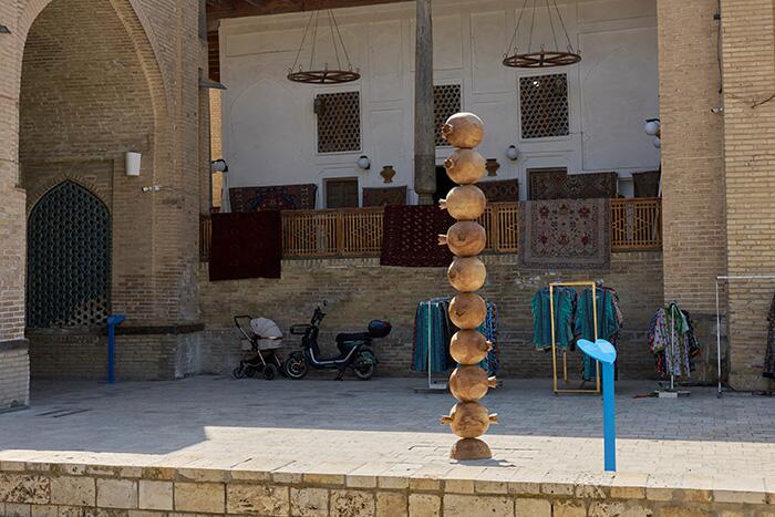 Partimos casi de madrugada y después de dos horas en tren, llegamos cuando la ciudad despertaba. A primera vista, el casco histórico parecía cumplir su rutina habitual -los comerciantes del abriendo sus puestos en el mercado, el perfume del pan recién horneado escapando de los hornos, el saludo amable de cualquiera que se cruce en la mirada-. Bastaba caminar unos minutos para percibir la vibración nueva que traía la Bienal de Bujará con una mezcla de expectación turística, orgullo local y una curiosa inquietud: ¿qué significa organizar un evento de arte contemporáneo en una ciudad que parece esculpida fuera del tiempo?