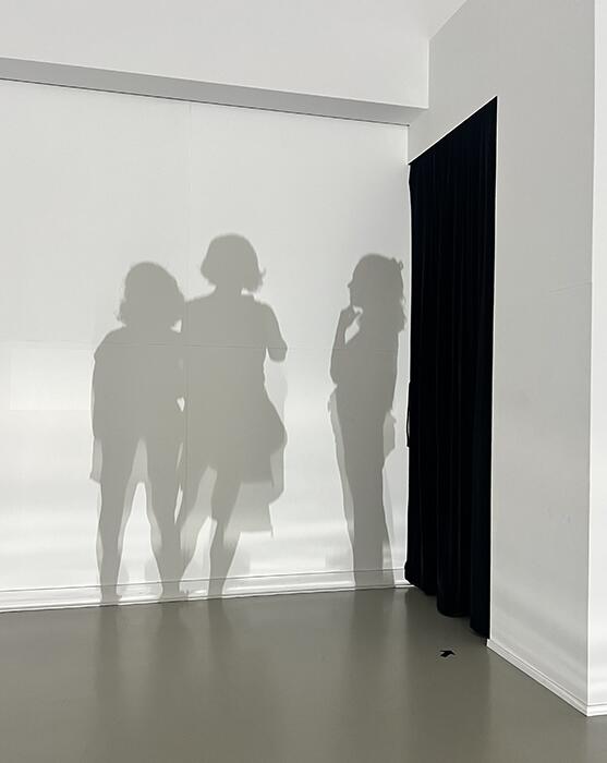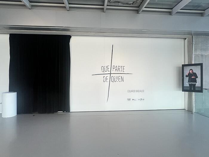Basualdo, explora en su obra la relación entre las artes visuales y el teatro, y para ello se vale de instalaciones, esculturas y dibujos que invitan a la experiencia corporal. Sus temas abordan la condición humana, la verdad, la muerte y la moral, jugando con tensiones como el cuerpo y la mente, lo visible y lo oculto. En esta exposición especialmente creada para el Museo MAR, "¿Qué parte de quién...?", cuestiona nuestra percepción del espacio y de nosotros mismos. El artista llegó al museo con un proyecto inicial, pero a medida que trabajó en la sala, este cambió radicalmente: así surgió la idea de esta mágica instalación que interactúa con la sombra y la experiencia del espectador.