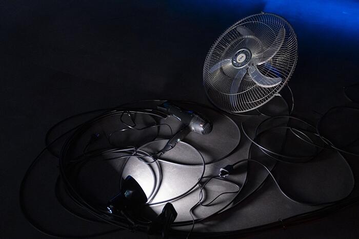 Detrás de esos objetos triviales, es posible intuir que se conserva agazapado un misterio a revelar. La lista de ellos es generosa: ventiladores, estufas, escobas, secadores de pelo, telas, todo tipo de prendas de vestir, mochilas de mano, lavarropas, cocinas, muebles y monitores, entre otros, conforman un paisaje fragmentario y cargado de ambigüedad.