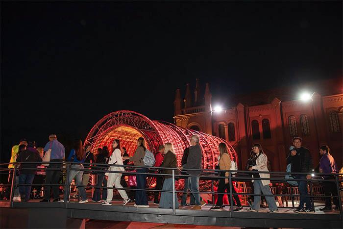 Se dio inicio a esta especial noche con la talentosa Marta Minujin. El evento inaugural de la Noche de los Museos 2025 se llevó a cabo en la terraza del Centro Cultural Recoleta con la inauguración de La Torre de Pisa de spaghettis, una obra participativa que invitaba al público a recorrerla. En esta acción colectiva se entregaron los 20 mil paquetes de tallarines que conformaban la obra. La instalación, concebida especialmente para La Noche de los Museos, se proyectó como uno de los momentos más esperados de la velada con una participación masiva de público.
