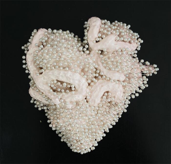 Existe una extendida costumbre a partir de la cual artistas de todas las épocas y continentes trabajan con materiales que encuentran a su paso. Pueden tomar ramitas de troncos o piedras de alguna cantera. Los buscan en una ferretería o encuentran en viejos anaqueles: talonarios de papel, palanganas, recortes de metal y mostacillas. Otros rescatan del paisaje urbano pedazos de ladrillos o tambores de lavarropas. Malka Aversa (Buenos Aires, 1991994) forma parte de esta tradición. La artista recorre librerías y pinta corazones sobre papeles artesanales o hace collages con films de acetato. Cala corazones sobre chapa, o los contornea en los retazos de tela descartados por algunas de las fábricas del conurbano. Hay corazones hechos con cientos de alfileres, chinches y perlas porque mientras algunos pinchan, otros brillan; están los que resplandecen y aquellos que cambian su aspecto según el punto de vista desde el cual se los mira. El corazón además de ser un órgano vital y representar universalmente al amor, es la forma con la que la artista otorga vida a los materiales que encuentra, porque los corazones de Malka animan amorosamente lo inanimado.