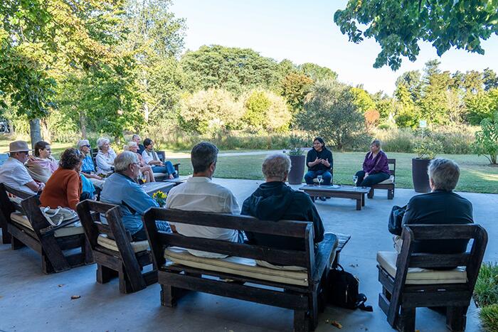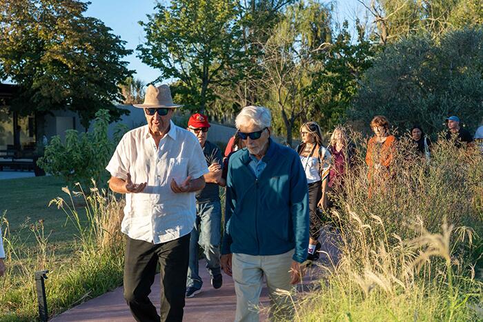 El parque escultórico propone un recorrido de 2 km en el que los visitantes pueden apreciar alrededor de 22 obras de artistas argentinos y extranjeros de primer nivel enmarcadas por la antigua vegetación plantada por los primeros pobladores que se establecieron en la zona y por la más reciente que ha priorizado el crecimiento de especies nativas. Entre los artistas presentes, se destacan Luciana Lamothe, José Luis Landet, Gabriel Chaille, Alberto Bastón Díaz, Luis Felipe Noé, entre otros. Consultada acerca de la conformación de este espacio, su curadora, Eva Grinstein, detalló que éste se caracteriza por una gran diversidad que abarca diferentes líneas estéticas, generaciones y orientaciones ideológicas y que las obras que se van sumando, como la de Rember Yahuarcani, se relacionan con la misión de la Fundación Tres Pinos, a cargo de la familia Cadenas, que consiste en apoyar el arte argentino e internacional contemporáneo. Para ella, la Maloca aporta mucho al relato del parque, donde conviven expresiones tradicionales, otras vinculadas a la abstracción geométrica y hasta de conceptualismo político. En este sentido, la Maloca, precisó, establece un rico diálogo con la Pejerreina de Adriana Bustos, ya que ambas reflexionan acerca del colonialismo europeo, el colonialismo interno y la historia de América.