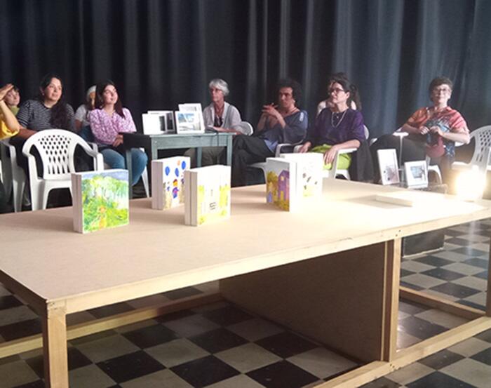 La jornada de cierre, efectuada en el teatro G.I.D.I, se inició con la bienvenida y agradecimientos del caso a cargo de Laura Khalloub y una introducción acerca del método de trabajo de la residencia por parte de Lola Fabres, quien detalló las primeras reuniones del equipo coordinador con los artistas para el afianzamiento mutuo. A continuación, fue el turno de los artistas y de los vecinos involucrados en los procesos que complementaron las exposiciones con sus comentarios. La artista tucumana, residente en Lincoln, Noemí Paladino, que estuvo en Triunvirato, destacó que su permanencia allí significó un antes y un después en su práctica -algo que otras de sus colegas remarcaron-, subrayó los multifacéticos roles laborales de las mujeres que conoció y, en relación a esto, produjo un homenaje a ellas consistente en una serie de 11 pinturas que estuvieron expuestas en el salón. Rocío Ricagno, artista del Delta y residente en el pueblo de Bermúdez, exploró la importancia de los juegos como instrumento de relación entre los pobladores y decidió contar el pueblo con un juego de mesa con sus respectivos casilleros y dados con la colaboración de los niños que fue conociendo. Al juego lo llamó Bermudez, no vale conformarse y se avanza o retrocede según las aspiraciones, posibilidades o dificultades propias que atraviesan la vida cotidiana. Micaela Ríos. artista de San Miguel, Buenos Aires, tuvo como intención, desde el comienzo, trabajar con adolescentes y enseguida se vio adoptada por ellos. Escuchó tanto sus relatos como los de personas de otras generaciones. Así conoció las reliquias y los relatos que afloraban de la memoria de las personas acerca de una fábrica ahora abandonada, el temor al desarraigo y los deseos de apropiarse del terruño por parte de los jóvenes. De todo ello surgirá, próximamente, un fotolibro que valorará las raíces; aquello a lo que toda esta gente se aferra. En Bayauca residió Cane Kallsen, artista relacionada con proyectos de cine comunitario. Eligió este pueblo debido a la presencia espectral de un antiguo cine en desuso. En sus recorridas fue conversando con los viejos vecinos, escuchó sus historias y los recuerdos de las películas vistas. Ellos le fueron conduciendo a otros testimonios hasta que pudo conformar un archivo extraoficial de la memoria de Bayauca. Sus vivencias allí terminaron cobrando forma en un audiovisual donde se narra el viaje de un fantasma que visita la localidad, escuchando los ecos de las historias que aún habitan en sus espacios y en sus personas. Manoela Cavalinho proveniente de Brasil, estuvo en Martínez de Hoz y su labor estuvo condicionada por una historia familiar y por las visiones de las lagunas que pudo observar desde el avión que la trajo hasta Argentina. Su obra, Todas las madres del mundo, donde una cama flota de manera cansina y atemporal en una laguna, no sólo es un homenaje, inspirado en una escultura del pueblo que lleva esa leyenda, sino un viaje donde lo introspectivo se funde con los evocaciones de los otros.