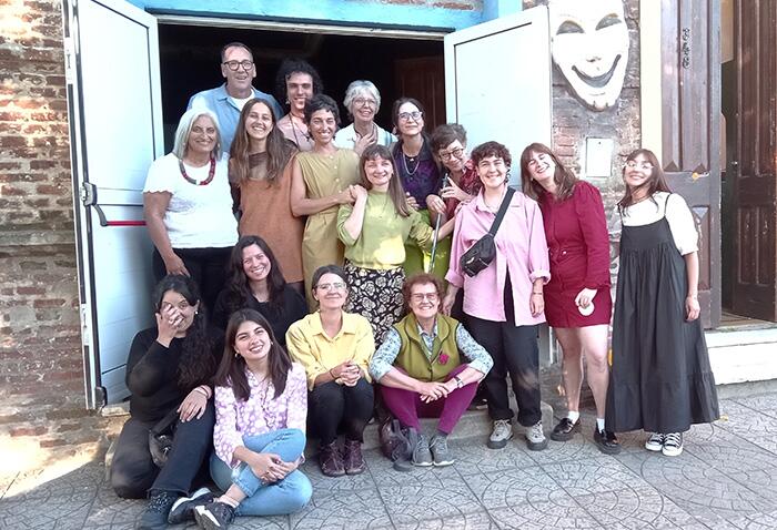 El advenimiento de la pandemia de Covid 19 en el año 2020 hizo que la experiencia se discontinuara, provocando un perjuicio que implicó la pérdida de visibilidad en el medio artístico y la desconexión con las redes que se habían establecido, tanto con artistas interesados, como con las poblaciones de los lugares donde habían transcurrido las ediciones anteriores. En esta quinta edición, las tareas llevadas a cabo para recobrar su funcionamiento, involucraron un relevante tiempo de reflexión para hallar nuevas estrategias que pudieran vencer estas dificultades y además sumar apoyos que permitieran superar las restricciones económicas de la actual coyuntura y los obstáculos burocráticos. Comunitaria 2025 significó, por lo tanto, síntesis de lo realizado y el inicio de una segunda fase superadora. Para ello fue fundamental la conformación de la cooperativa Pampa y Vía en la localidad de Roberts, ahora sede de la Residencia, así como también el respaldo de la Municipalidad de Lincoln, de la Fundación Banco Provincia, del Banco Credicoop y de la Universidad Nacional de San Martín. En la coordinación general, además de Laura Khalloub, Rodolfo Sala y Lola Fabres, se sumó este año al equipo la artista Teresa Pereda para el acompañamiento curatorial. Se incorporaron también las investigadoras y estudiantes de sociología del arte Ana Raggio, Luján Domínguez y Alina Alaniz, quienes contribuyeron con el seguimiento teórico y documental de los procesos llevados a cabo.